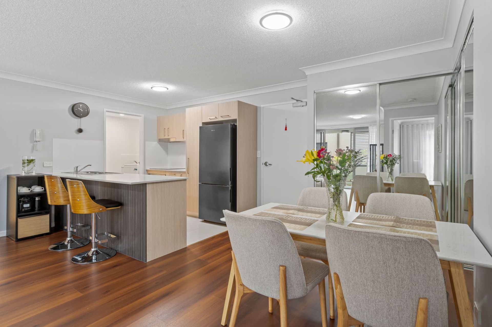 Unlike any other residence in the building, this property has undergone a complete transformation. From the premium natural timber-look flooring to the freshly repainted interiors in soft warm tones, refreshed balcony flooring and brand-new sheer curtains layered over existing blinds – every detail has been thoughtfully upgraded to create a refined, contemporary and welcoming home.