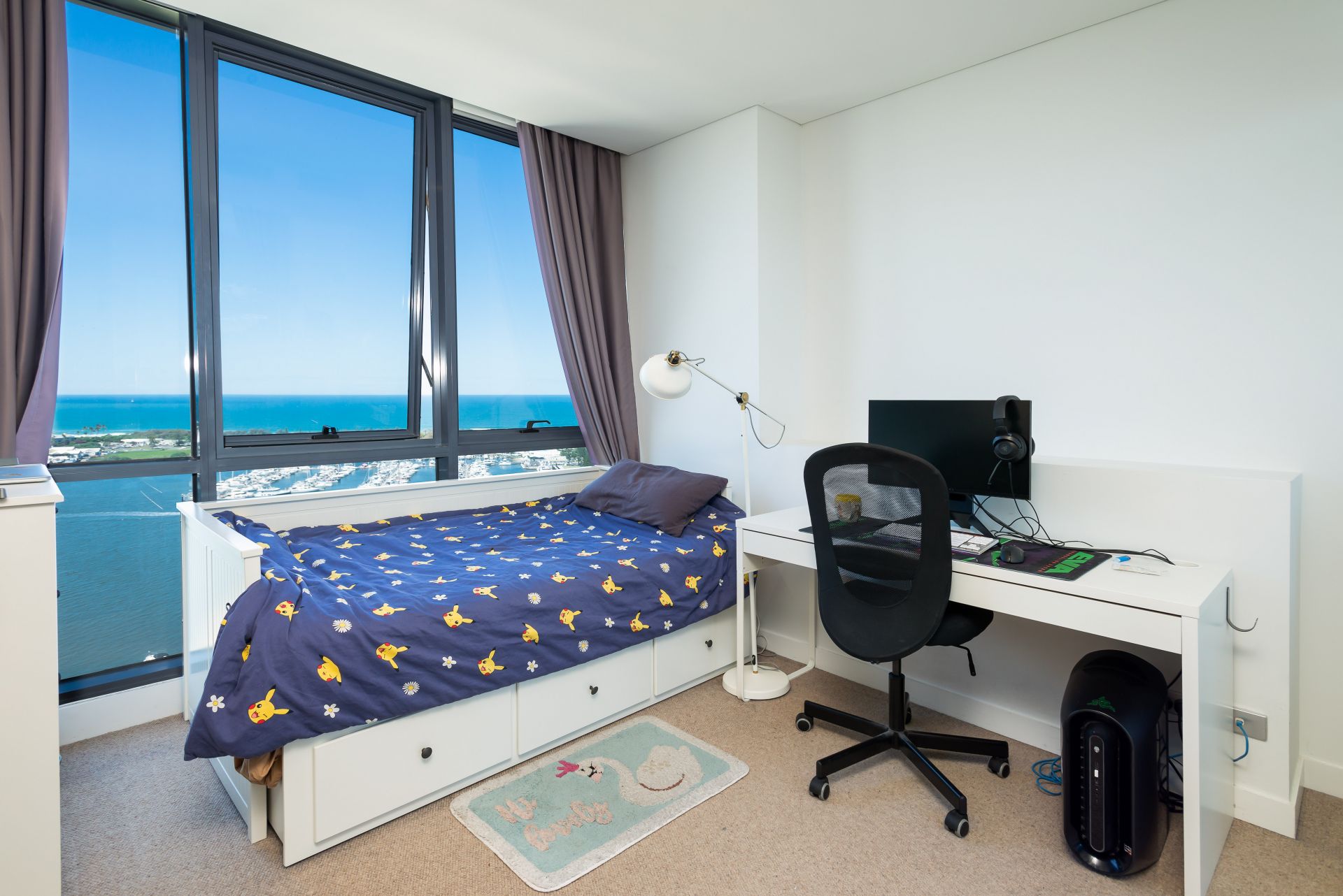 The apartment features unobstructed views, with two comfortable bedrooms, one Study room, two bathrooms, spacious balcony that allow you to enjoy your meal with the breeze from the ocean. Quality fittings and finishes throughout. Public area including Resort style pool, bbq and gym facilities.