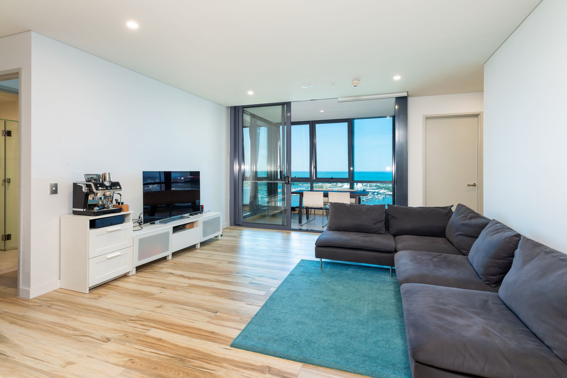 – Open plan light filled living room with enclosed balcony, perfect for dining area